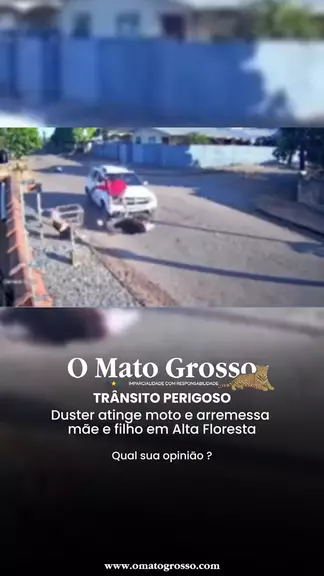 Câmeras de segurança registraram o momento em que mãe e filho, em uma moto, são atingidos por um carro em Alta Floresta (MT). O acidente aconteceu enquanto a mulher levava o filho para a escola. Ambos foram arremessados contra um muro. Qual sua opinião ? #omatogrosso #jornalismo #altafloresta #acidente #trânsito
