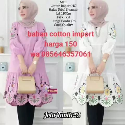 JOTA TUNIK BAHAN COTTON IMPORT BUNGA BORDIR ORI LD 110 SIZE XL #TUNIKIMPORT # More
