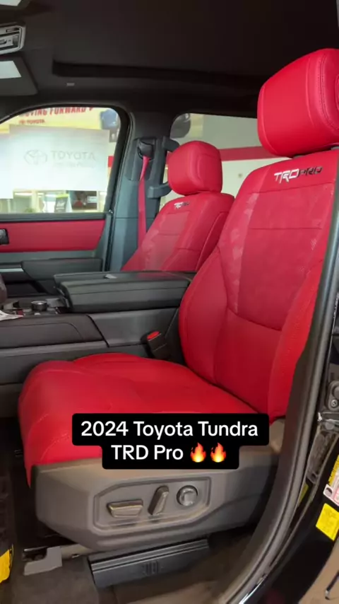 437-hp Toyota Tundra TRD Pro com Midnight Black Metallic Paint e cockpit interior Softex-aparado vermelho. # toyota # tundratrdpro # toyotausa # fremonttoyota # tundra