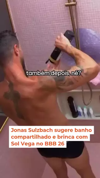 EITAAA!!! - A noite desta quinta-feira (15) foi marcada por um momento descontraído no BBB. Enquanto tomava banho, Jonas Sulzbach sugeriu, em tom de brincadeira, que Sol Vega poderia dividir o chuveiro com ele, afirmando que “comigo não tem nada, se quiser tomar banho junto”. A sister entrou no clima e respondeu com bom humor, arrancando risadas do colega.
