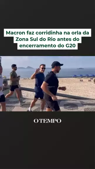 CORRIDINHA PELA ORLA - O presidente da #França, Emmanuel #Macron, que está no #Rio para participar da reunião da Cúpula de Líderes do #G20, foi flagrado correndo na Praia de Ipanema, na Zona Sul do Rio, na manhã desta terça-feira (19). #otempo