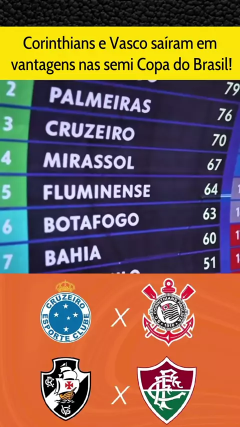 Corinthians e Vasco defendem a vantagem contra Cruzeiro e Fluminense pela as semifinais da copa do Brasil! #CorinthiansXCruzeiro #fluminensexvasco #copadobrasil #esporteviral #desafios12