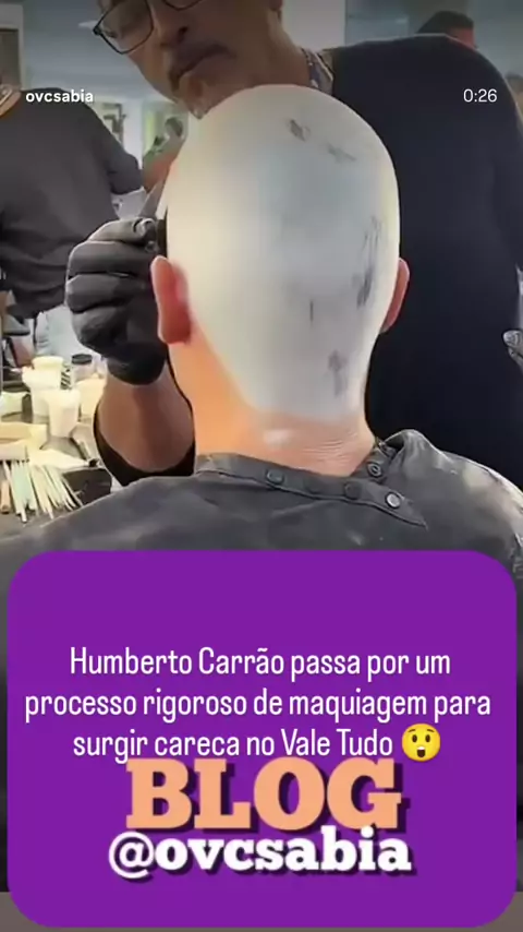 Pensava que ele tinha raspado o cabelo? Nada disso! Tudo efeito de maquiagem. O ator Humberto Carrão, que interpreta o Afonso, o filho de Odete Roitman que tem passado por um tratamento de leucemia, está passando por um processo rigoroso de maquiagem para surgir careca na atual fase de Afonso em #ValeTudo. A transformação foi revelada por Rebeca Cobucci, beauty artist da TV Globo, nas redes sociais. Siga @ovcsabia #transformacao #visual #HumbertoCarrão #odeteroitman
