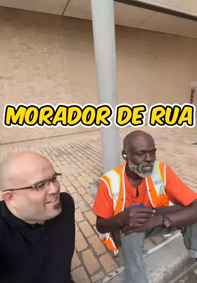 Conversando com um morador de rua no centro da cidade de Houston, Texas! Brasil!