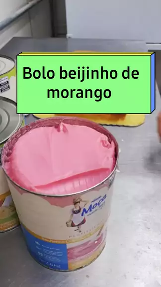 Bolo feito com moça morango moça beijinho #morango #beijinhodemorango #morangodoamor #calda #recheionestle