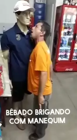 bêbado brigando com manequim