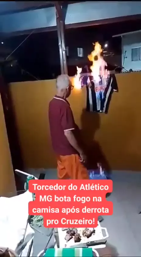 Torcedor do Atlético MG coloca fogo na camisa do time após derrota para o Cruzeiro! #atleticomg #cruzeiro #galo #classicomineiro #futebol