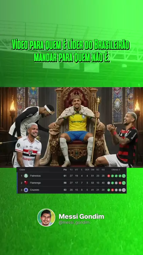 Segue o líder! 🔥 O Palmeiras tá embaçado no futebol brasileiro! 💚⚽ Gostou? Curte e compartilha! 😉 #PalmeirasLíder #Verdão #VerdaoLíder #PalmeirasMeme #Cheirinho
