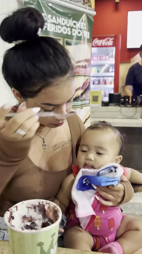 Comendo um pouquinho de açai com a titia nazare 🥺 Obs: deixei so um pouquinho e ela gostou muito haha