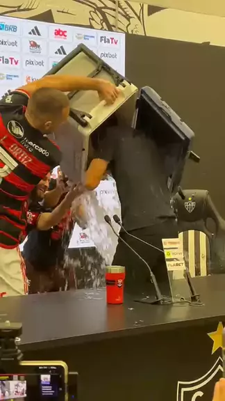 É BANHO NO FILIPE LUÍS! JOGADORES DO FLAMENGO INVADEM COLETIVA DE FILIPE LUÍS E DERRUBAM COOLER COM GELO SOBRE O TREINADOR! QUE RESENHA! HAHAHA Por @brunodoubs 📸 @__perdigao | @gabriel.orphao | Equipe @paparazzorubronegro #Flamengo #VamosFlamengo #CRF #MaisQuerido #AcimaDeTudoRubroNegro