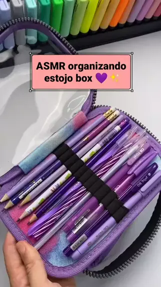 ASMR organizando estojo box em tons de roxo ππ #asmr #asmrvideo #papelaria #papelariaschuster #estojo