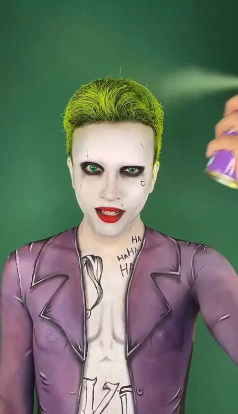 Mini tutorial da maquigem e bodypaint de Coringa 💚🤡 #maquiagem #bodypaint #challenge #Coringa