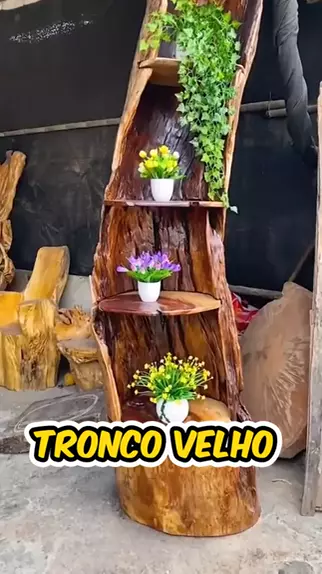 Ele fez um Móvel lindo com um tronco velho de Madeira