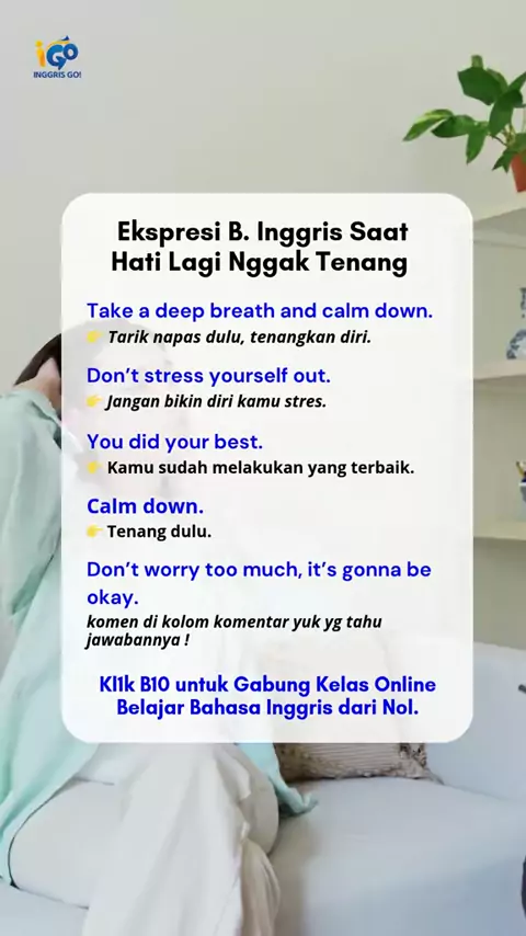 Kadang bukan cuma grammar yang perlu diperbaiki, tapi juga mood dan perasaan Kalau lagi kacau atau sedih, coba ucapkan kalimat-kalimat ini buat nenangin diri sendiri atau temanmu. Mulai dari “Take a deep breath” sampai “It’s gonna be okay.” Ingat, semuanya cuma sementara #DailyExpression #EmotionalEnglish #SelfHealing #CalmingWords #BelajarBahasaInggris