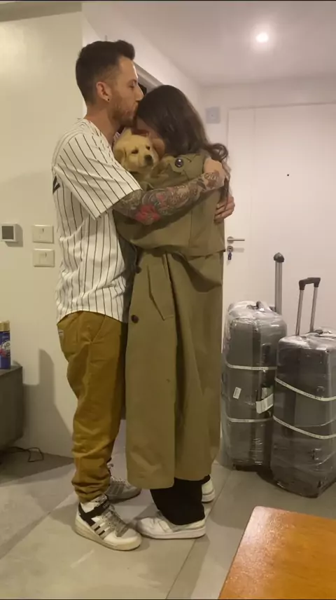 ao chegar em casa abrindo a porta esta mulher teve uma grande surpresa seu marido tinha deixado um cachorrinho de presente para ela dentro do apê logo ao ver ficou emocionado foi amor à primeira vista ao cachorrinho #pets #dog #viral