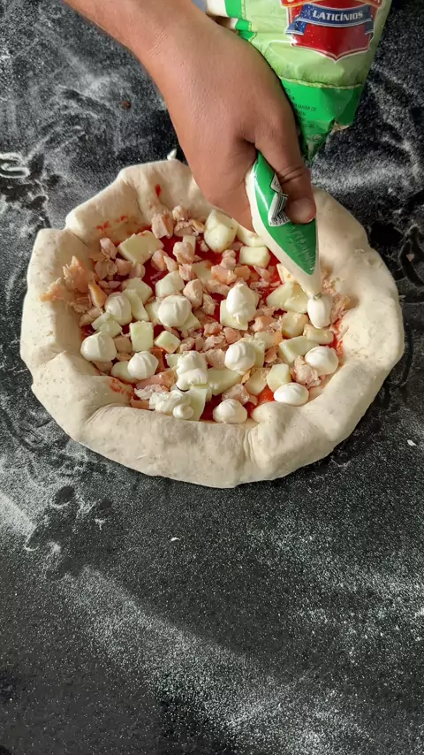 Pizza Frango com Requeijão 🐔 🍕 Essa pizza foi feito com um frango defumado cortado em pedaços e o requeijão da Santa Maria. As bordas foram recheada com mozzarella e requeijão. Assado no forno Roccbox da @gozney 🔥 . . . #pizza #pizzalover #pizzatime #catupiry #frangocomcatupiry #CapCut