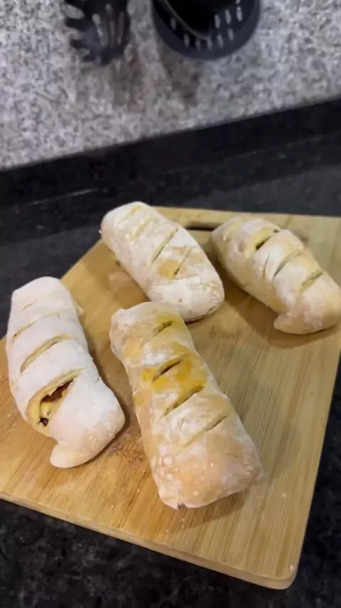 Pão com Chouriço 🥖 Ingredientes: 300g farinha sem fermento Sal 180ml de água morna 4g fermento de padeiro Chouriço #pao #paocomchouriço #chouriço #paocaseiro More
