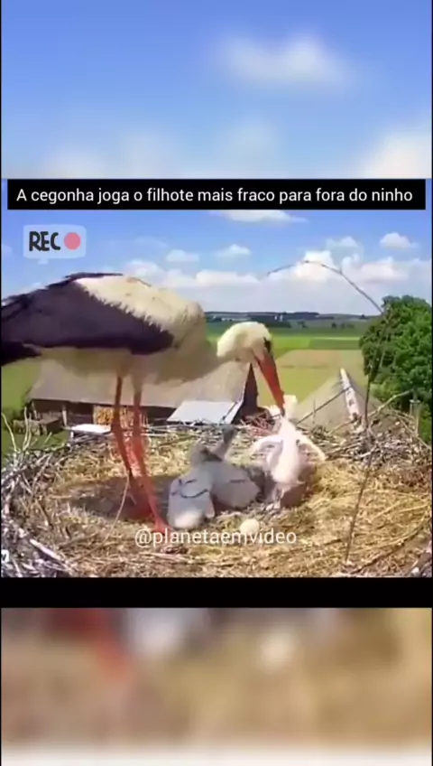 A cegonha joga o filhote mais fraco para fora do ninho #ave #cegonha #Filhote