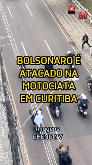 O fotógrafo Cheng NV registrou o momento em que um homem arremessa um objeto contra o presidente Jair Bolsonaro durante a motociata em Curitiba. Ele não foi atingido. #motociata #BOLSONARO #jornalismo #news