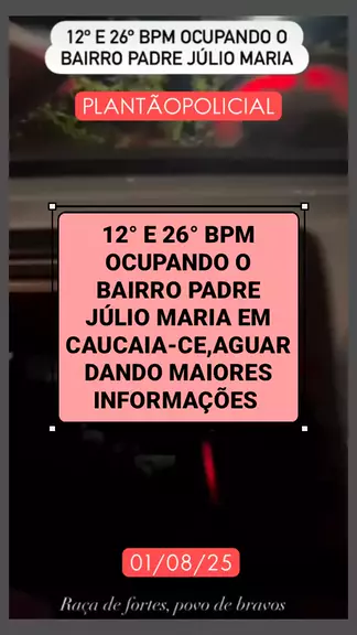 12° E 26° BPM OCUPANDO O BAIRRO PADRE JÚLIO MARIA EM CAUCAIA-CE,AGUARDANDO MAIORES INFORMAÇÕES #últimasnotícias #ceara3xmaisforte #noticiasdeultimahora #notícia #Operacão