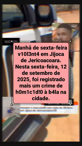 📍 Jijoca de Jericoacoara Ce 🚨 Manhã de sexta-feira violenta em Jijoca de Jericoacoara. Nesta sexta-feira, 12 de setembro de 2025, foi registrado mais um crime de homicídio à bala na cidade. Segundo informações A vítima foi identificada como Yuri Marques de Arruda, de aproximadamente 20 anos de idade, natural da cidade de Aracati. Segundo informações, o jovem foi alvejado com cerca de 20 disparos de arma de fogo, vindo a óbito no local. #noticiasdeultimashora #ceara3xmaisforte #homicídio #no