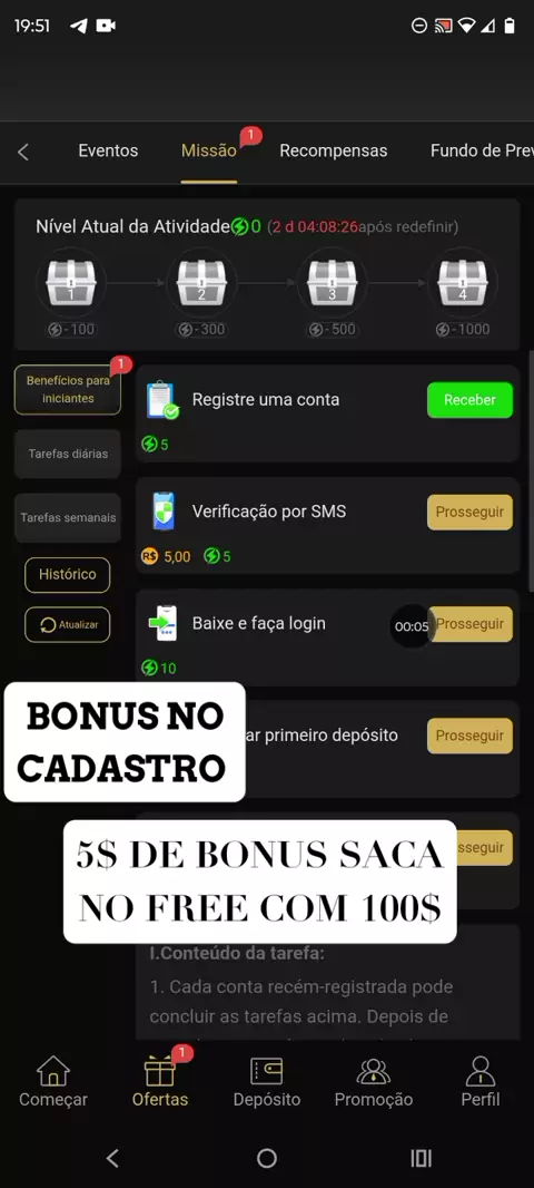 plataforma dando bônus no cadastro