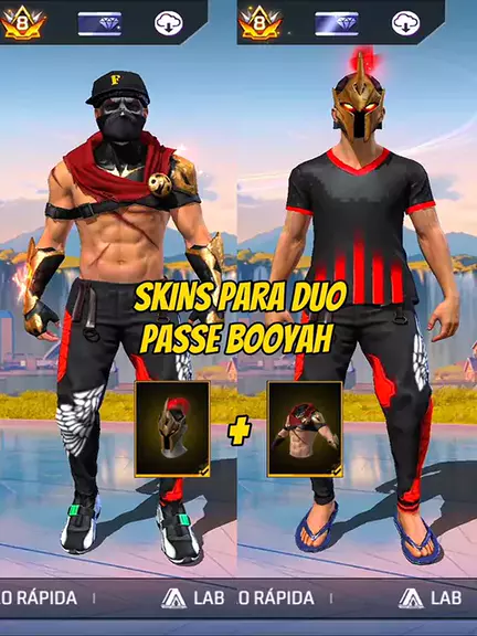 skins para duo versão passe booyah #freefire #combinacionesff #combinaçõesfreefire #pobrelkff #skinspara4x4