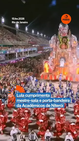 🤝 O presidente Luiz Inácio Lula da Silva (PT) saiu do camarote e foi à Avenida da Marquês de Sapucaí para cumprimentar o mestre-sala e a porta-bandeira da escola de samba Acadêmicos de Niterói. O petista foi homenageado em desfile neste domingo (15.fev.2026). No momento, ele estava acompanhado do prefeito Eduardo Paes (PSD-RJ). 🔔 Relevância jornalística você encontra no Poder360: entre pelo link da bio