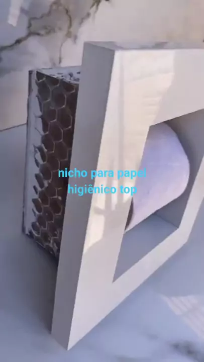 nicho para papel higiênico . . . #porcelanataria #porcelanato #marmoraria
