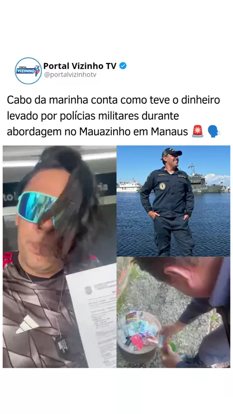 Um cabo da Marinha do Brasil registrou boletim de ocorrência contra um policial militar, acusando-o de furtar dinheiro durante uma abordagem no bairro Mauazinho, zona Leste de Manaus. Segundo o militar, ele também irá formalizar denúncia na Corregedoria do Estado para que o caso seja investigado. A PM ainda não se manifestou. #Vem2026NoKwai #portalvizinhotv