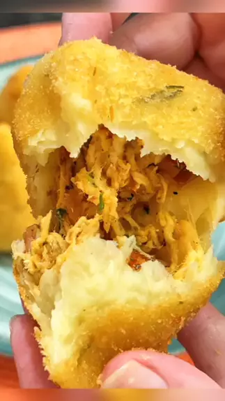 COXINHA DE AIPIM -Crocante Por Fora e CREMOSA por Dentro !! Ingredientes : para a massa : 600 ml do caldo do cozimento do frango 1 cubo de caldo de galinha 2 colheres de sopa de manteiga ou margarina 1 kg de aipim cozido e amassado 2 xícaras de farinha de trigo sal e temperos a gosto 2 colheres de sopa de cheiro verde