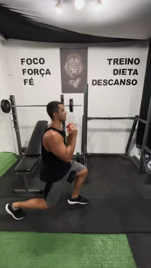 Afundo alternado com rotação com halter Lebih banyak