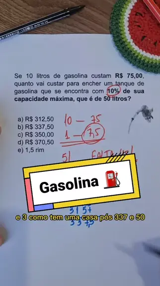 Questão prática do dia a dia 🔥 #Matemática #gasolina #porcentagem #estudante #enem