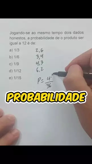 Jogando-se ao mesmo tempo dois dados honestos, a probabilidade de o produto ser igual a 12 é de: #viraliza #math #matematica #educação #education