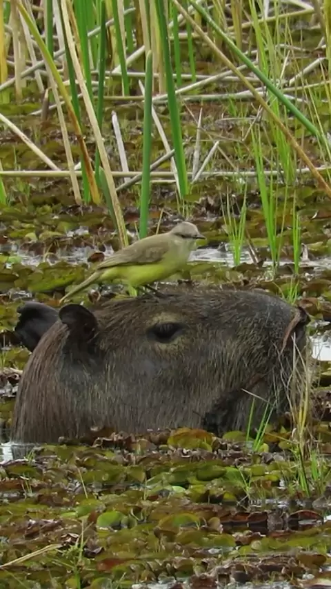 Você já viu uma capivara vocalizando? E vocalizando na companhia do “amigo equilibrista”? 😄 As capivaras são animais que vivem em grupos. Como muitas outras espécies, elas utilizam sons para se comunicarem. Esse do vídeo é um deles, e pode ser utilizado para alertar os demais indivíduos do bando sobre algum perigo, mas o repertório acústico das capivaras é variado e pode ser usado em diferentes situações. #SomosEstrelasHOK #EstrelaDeFamília