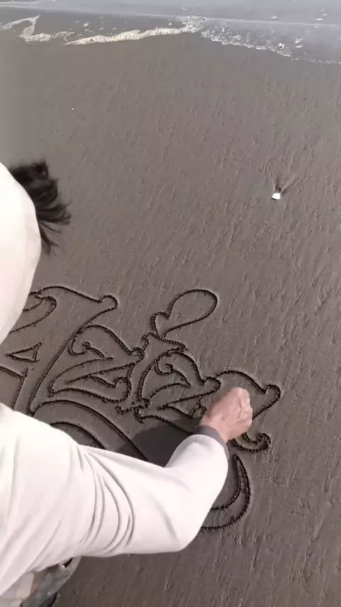 Membalas @nur.azizah.umi @nur.azizah.umi#pantaijetisnusawungu#beach#writer#penulispasir゚viral#graffiti#bismillah#tulisanindah#tulisnamadipasir#rameinyuk#myname#nameonbeach#beachcalligraphy#4u#