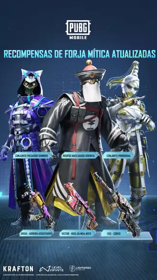 As Recompensas da Forja Mítica do PUBG MOBILE estão disponíveis agora! 👁️ Mascarado Oriental 👻 Conjunto Predador Sombrio 🤕 Conjunto Primordial 🌹 Vector - Rosa da Meia-Noite 🎃 Groza- Abóbora Assustadora Qual delas chama mais a sua atenção? 👀 #PUBGMMYTHIC340 #PUBGMSETS340 #PUBGMOBILEC7S20