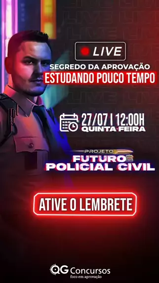 Você já se inscreveu no PROJETO FUTURO POLICIAL CIVIL? Não perca tempo, vai ser INSANO! Mas antes, nós queremos iniciar essa semana com um pré-aquecimento desse super evento. Por isso, hoje nós teremos uma live às 12h com o professor Luisão, trazendo um insight muito importante SEGREDO DA APROVAÇÃO ESTUDANDO POUCO TEMPO. Então já ative o lembrete e não perca por nada! Link: https://youtu.be/z9w8Z_xcav8 #concursopoliciacivil #pcsp #concurso #ConcursoPublico #policiacivil