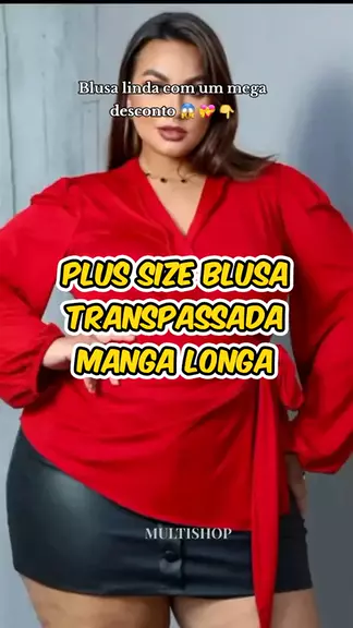 Plus Size Blusa Transpassada Manga Longa #shoppe