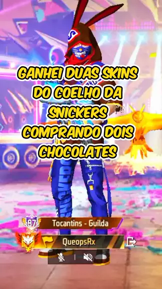 ganhei duas skins do coelho da snickers comprando dois chocolates #freefire #snickers #QueopsRx #amigosfreefire #maisviews