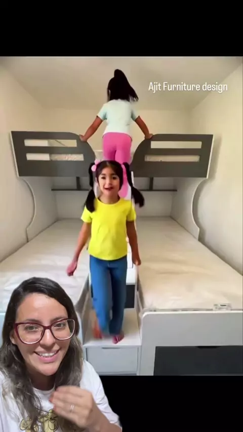 Ideia perfeita para quem tem pouco espaço e muitos filhos. A treliche resolve o problema de forma prática e funcional. Três camas no mesmo lugar, aproveitando a altura do quarto. Organização, conforto e mais espaço livre para as crianças brincarem no dia a dia. #organizacaodacasa #ideiapratica #quartoinfantil #poucoespaco #vidareal