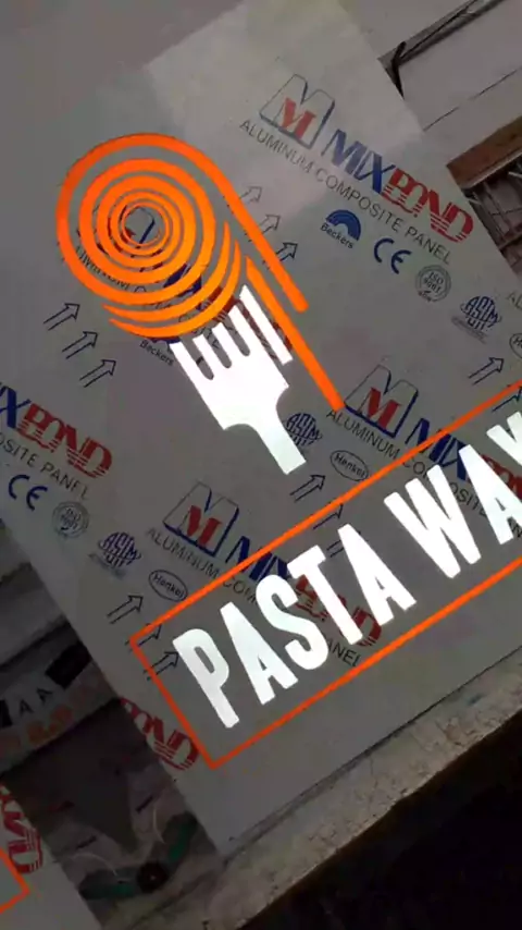 Fachada em ACM, caixa luminosa vazada com acrílico e led interno, toldo retrátil, solicite seu orçamento. #pastaway #massas #bufet #restaurante #churrascaria