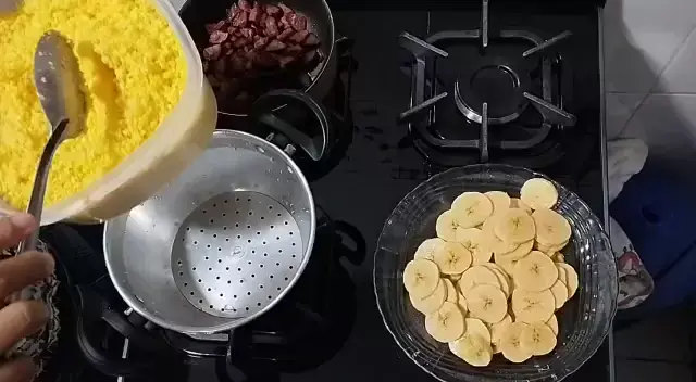 cuscuz com banana da terra e calabresa se inscreva no meu canal. sanyy santos