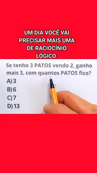 RACIOCÍNIO LÓGICO SUPER INTERESSANTE UM DIA VOCE VAI PRECISAR TENTE FAZER E PONHA NOS COMENTARIOS SUA RESPOSTA #educação #interessante #Fácil #matematica #concurso