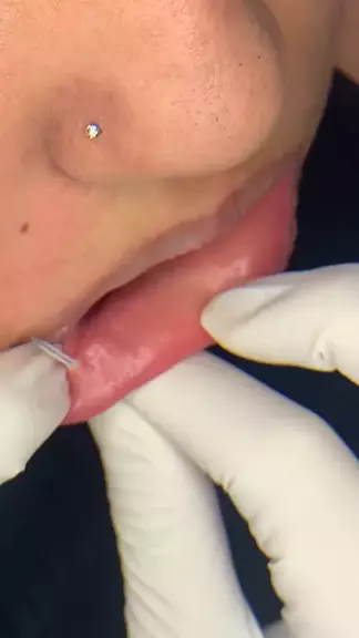 perfuração de labret lateral 💖 #fy #fyp #explore #kwaii #piercing