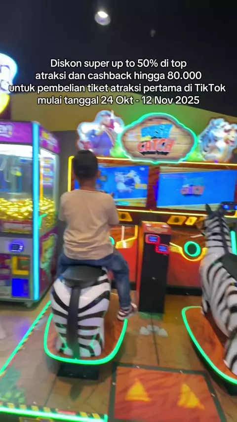 Cuma 80ribuan aja sudah bisa main di Timezone🤩✨ Caranya : 1. Klik tag lokasi di video ini 2. Pilih tiket yang mau kamu beli! 3. Pilih tanggal & hari 4. Lanjut bayar deh! 5. Tukarkan voucher ke kasir Diskon super up to 50% di top atraksi dan cashback hingga 80.000 untuk pembelian tiket atraksi pertama di mulai tanggal 24 Okt - 12 Nov 2025 #SuperPlayGOOkt #SuperPlayGO #SuperBrandGO #SuperTravelVibes #SuperTravelBrand