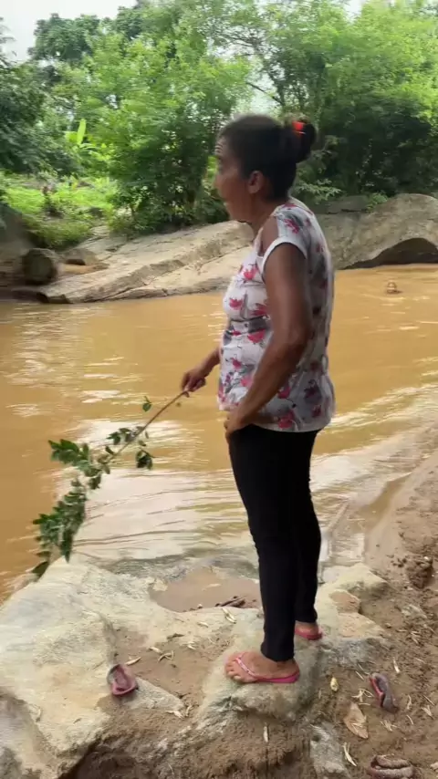 A mãe indo buscar as meninas no rio kkkk