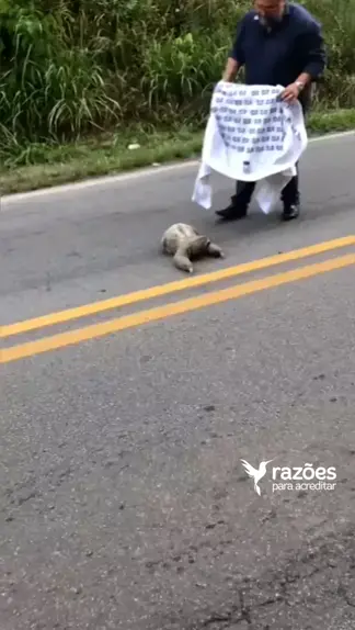 Em Caieiras, na Serra da Cantareira, homem ajuda um bicho preguiça a atravessar a estrada. #razoesparaacreditar E o bicho agradece ao final.