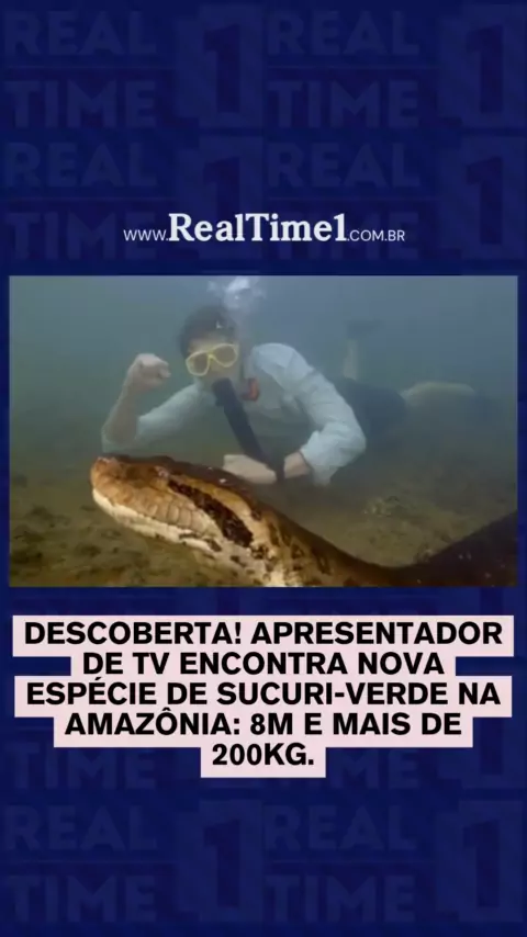 Nova espécie de sucuri vista na Amazônia pode ser a maior do mundo! Sucuri-verde foi encontrada por apresentador de TV na Amazônia. Animal tem mais de oito metros e pesa cerca de 200 kg. . . . #realtime1 #natureza #amazonia #sucuri #sucuriverde