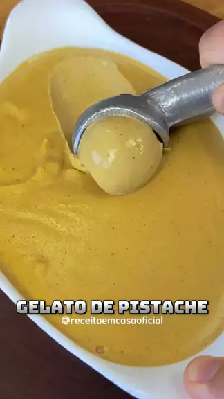 Gelato de pistache Ingredientes: Leite integral - 600g Pasta de pistache - 100g Açúcar refinado - 170g Leite em pó - 35g Gema de ovo - 120g (7 gemas) Sal - 3g #culinária #receita #gelato #sorvete #receitasfaceis